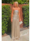 Shiny Metallic Stretch Fabric Sweetheart Sleeveless A-Line Floor Length Graduation Dress, PD4081