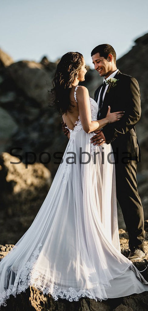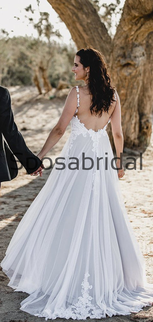 Attractive Lace A-line Country Illusion Long Wedding Dresses WD0569