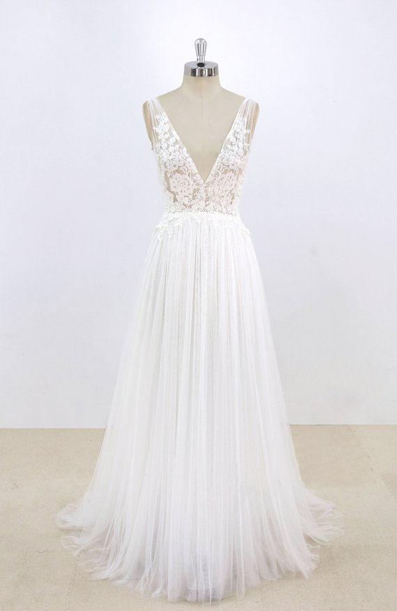 Simple Sexy Deep Low V Neck Small A-line Cheap Dresses For Wedding, WD398