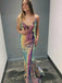 Sparkly Laser Sequin V-neck Spaghetti Straps Mermiad Long Prom Dress, PD3505