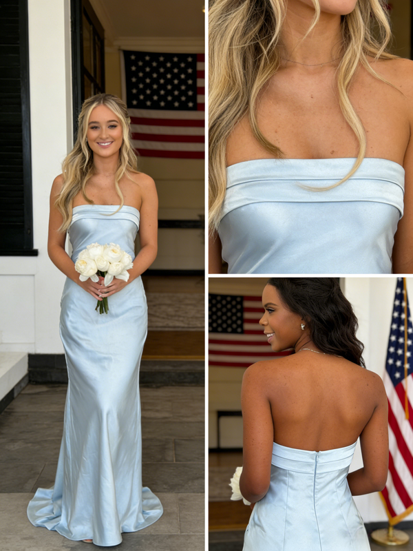Sexy Light Blue Soft Satin Sweetheart Mermaid Bridesmaid Dress for Wedding Party, BD3445