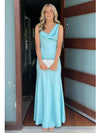 Ice Blue Spaghetti Straps Satin Mermaid Evening Dress, Formal Prom Gown, PD4135