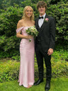 Blush Satin Off the Shoulder Mermaid Gown - Prom Dress for Graduation,