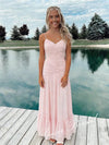 Sweet Chiffon Spaghetti Straps V-Neck Sleeveless A-Line Floor Length Graduation Dress, PD4083