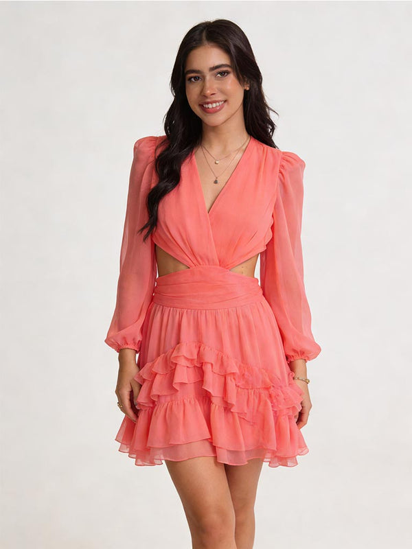 Sweet Chiffon Long Sleeves Ruffles A-Line Mini Dresses/ Homecoming Dre