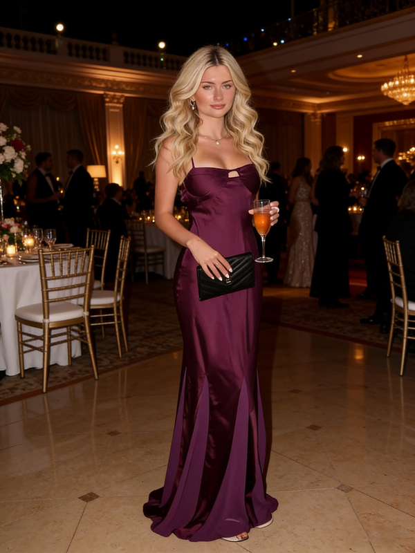 Simple Orchid Soft Satin Spaghetti Straps Mermaid Floor Length Prom Dress, PD4113